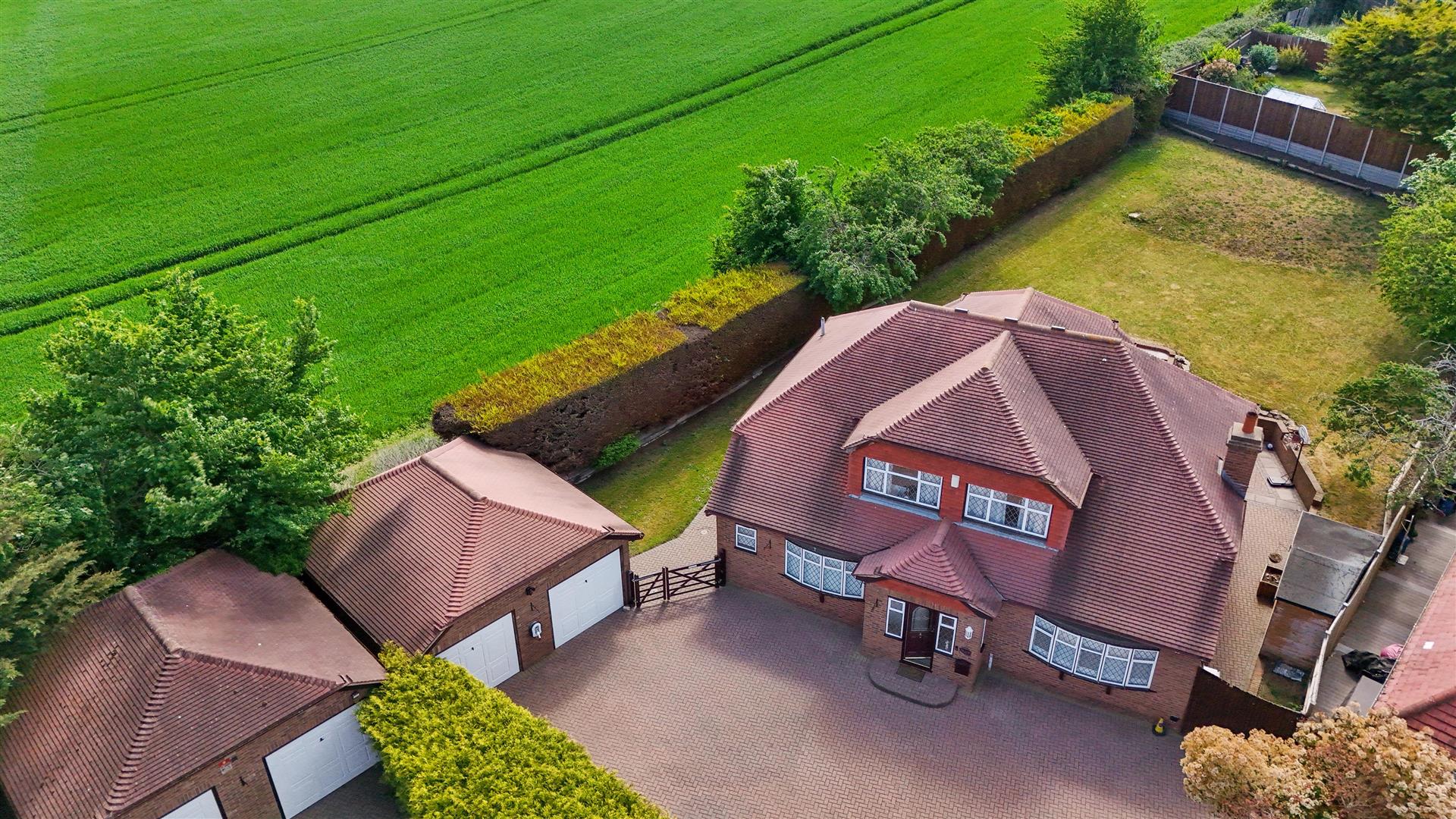 Guide Price £950,000-£975,000 Park Estates are delighted to offer this exceptional and already massive family home, with the full benefit of planning consent under 24/01281/LDC to extend the property to make 6 bedrooms and 5 bathrooms, with large gabled glazed windows to the master and principal suites and a large ground floor extension across the rear. Situated at the end of a small and quiet cul-de-sac road with views across farm land, the property occupies a substantial 0.3 acre plot with a very large frontage, massive side access on both sides, making easy entry for all the machines and vehicles required for the renovation, off road parking for over 10 cars and a double garage with an EV charger point. Currently the accommodation comprises of a very large entrance hall, living room, fully fitted kitchen, utility room, 2 ground floor bedrooms - one with an ensuite and a separate WC. To the first floor there is a huge landing area, 2 further very large bedrooms and separate bathroom. Situated very close to all amenities including public house / restaurant, golf and sporting facilities, transport links including M25 and A2 motorway links, Dartford River Crossing, Bluewater Shopping Centre and within close proximity to the village centre and local schools including a good selection of popular primary schools and convenient access to both Wilmington Grammar schools, the academy and within the catchment area for Dartford Grammar schools. Additional benefits to note include 5 air conditioners installed in the property, underfloor heating in master bedroom and downstairs wc and 'Californian' shutters to living room and bedroom. Your early viewing of this super family home is very highly recommended.