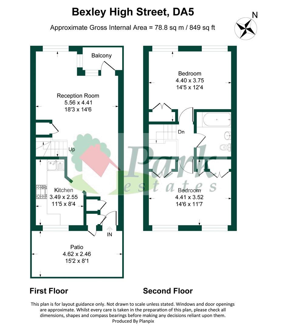 Bedroom 2 14' 5'' x 12' 4'' (4.39m x 3.76m)