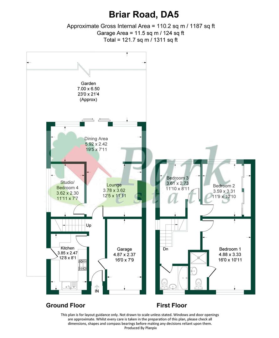 Garden 23' 0'' x 21' 4'' (7.01m x 6.50m) (Approx)
