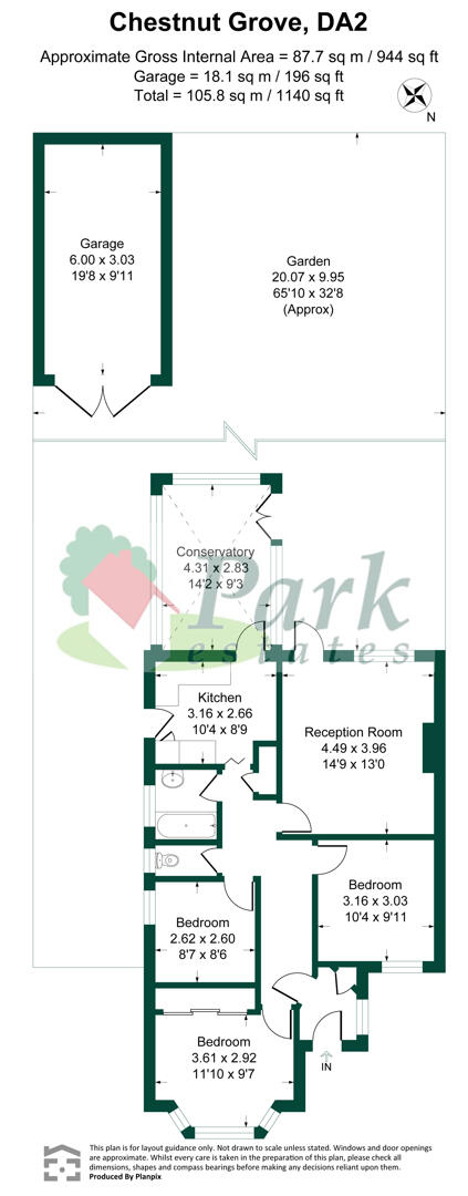 Garden 20.07m x 9.96m (Approx)