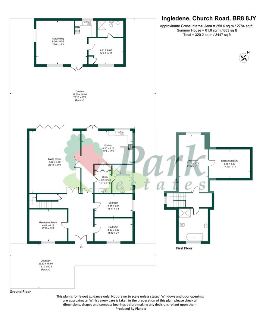 Driveway 73' 10'' x 60' 8'' (22.49m x 18.48m) (Approx)