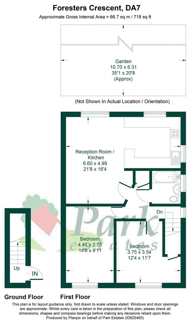 Garden 35' 1'' x 20' 8'' (10.69m x 6.29m) (Approx)