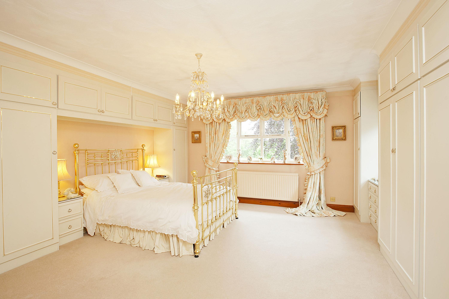 The first floor landing provides access to the upstairs accommodation, beginning with the exceptional master suite. The vast room features built in wardrobes in addition to a stunning, recently fitted en-suite bathroom with separate shower cubicle, his and hers wash basins and high quality fittings.