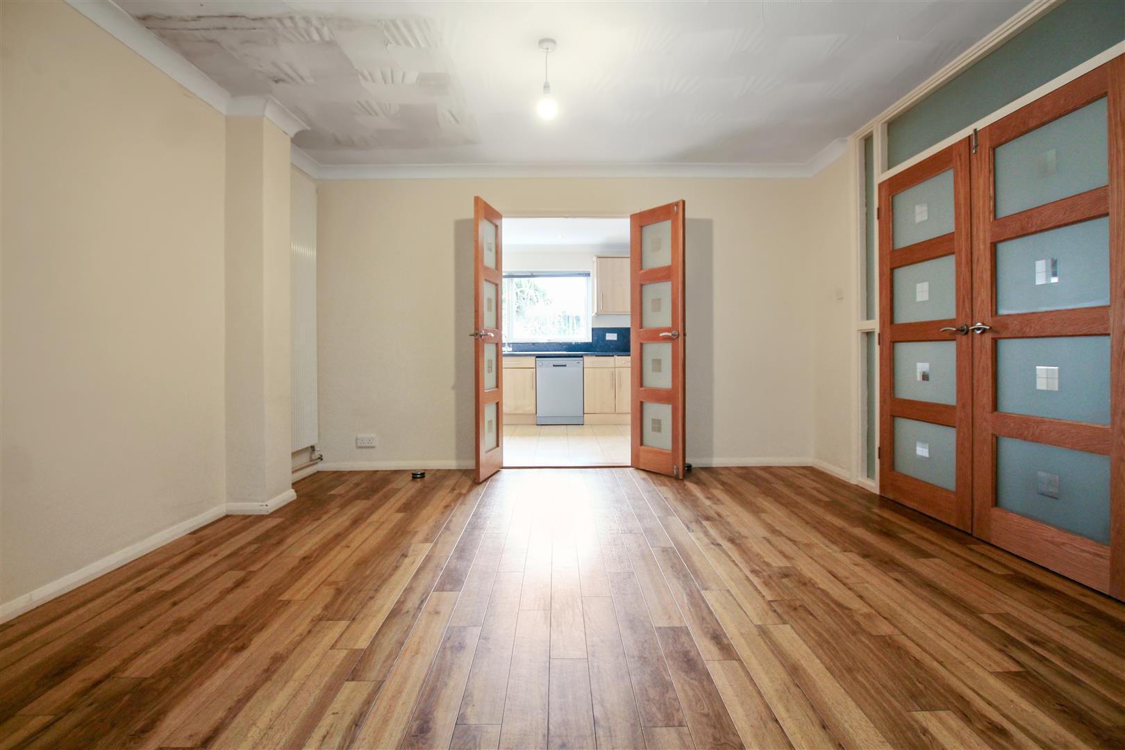 - Fitted kitchen opening into dining area
