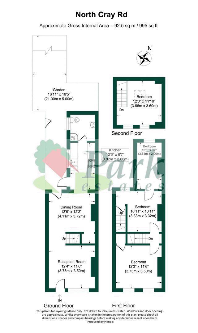 Bedroom 3 12' 6'' x 6' 7'' (3.81m x 2.01m)