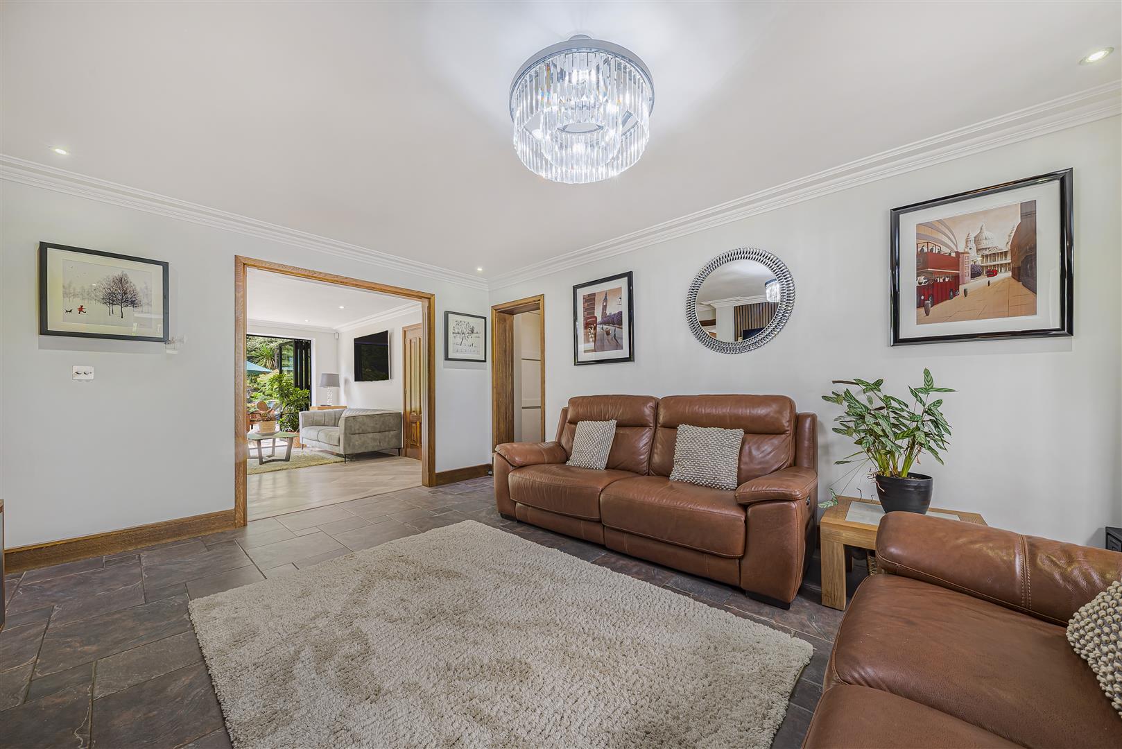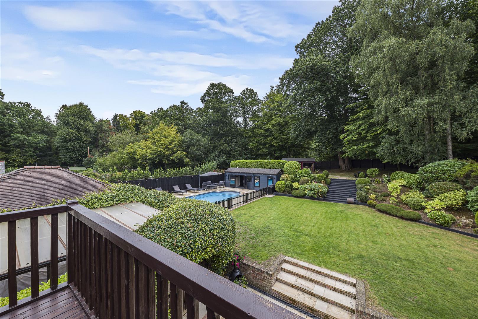 Nestled along the highly regarded and private Rowhill Road, Lucky Stones occupies an enviable plot of over 1.5 acres, complemented by beautifully landscaped gardens and an additional area of woodland to the front. This distinguished five-bedroom residence offers expansive and thoughtfully designed accommodation, ideal for modern family living. The ground floor welcomes you with a spacious entrance hall leading to three elegant reception rooms, a dedicated study, a luxury fitted kitchen/breakfast room and a separate utility/boot room. Upstairs, the first-floor landing gives access to four double bedrooms—two of which enjoy en-suite shower rooms—a stylish family bathroom and a principal suite featuring a luxurious en-suite bathroom, walk-in wardrobe and a private rear balcony overlooking the garden. The property is approached via a sweeping in-and-out driveway framed by mature gardens. To the rear, a tranquil and secluded garden awaits—perfect for entertaining or unwinding—with a heated swimming pool, a generous garden room with WC, plant room and bar area, greenhouse, and a covered pergola. Further highlights include a detached double garage, ample off-street parking, underfloor heating, gas central heating, double glazing, air conditioning, and bi-fold doors. Lucky Stones is ideally positioned for access to sought-after state and independent schools, including Dartford Grammar, Wilmington Grammar, and Merton Court Prep. Excellent transport links are close at hand, with the A2, M20, and M25 easily accessible and mainline stations at Bexley and Ebbsfleet International offering swift connections to London in just 18 minutes. Bluewater Shopping Centre is also just ten minutes away. A viewing is strongly recommended to fully appreciate the scale, quality, and setting of this exceptional home.