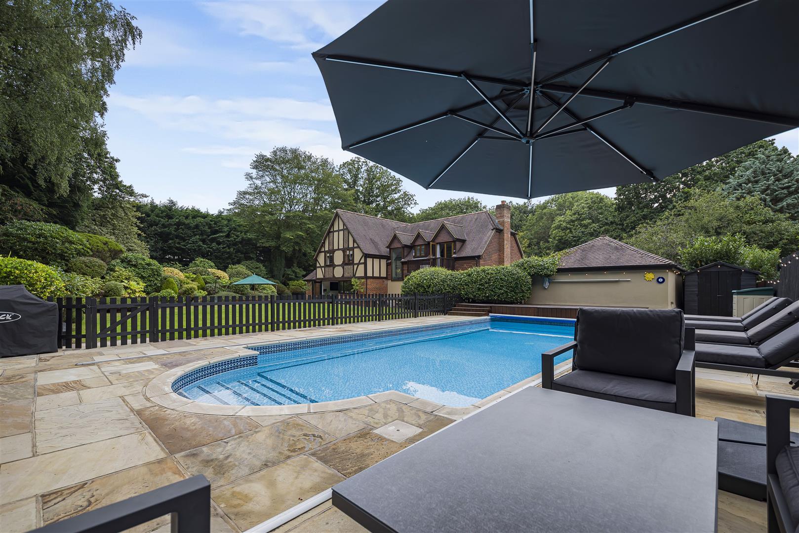 • Tranquil and secluded rear garden with heated swimming pool