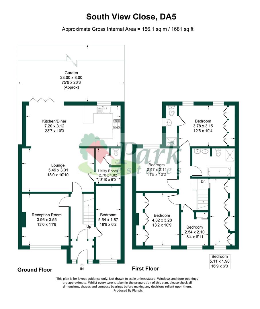 - 75' approx rear garden