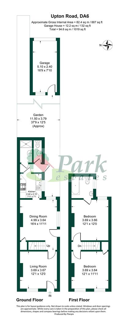 • 37' approx rear garden