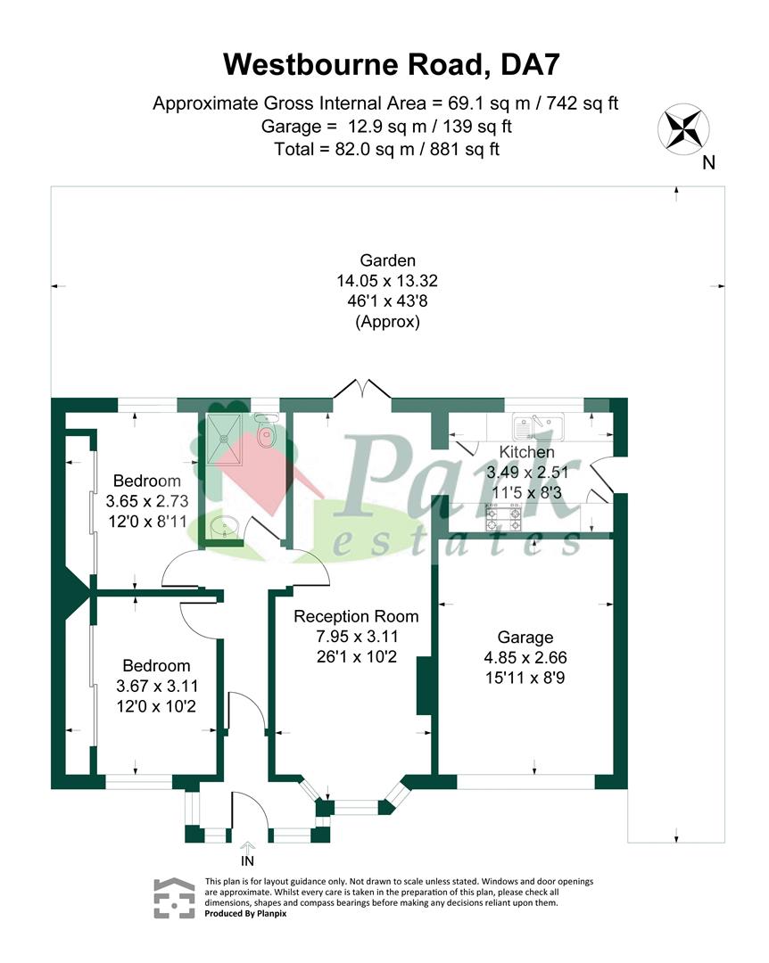 Garden 46' 1'' x 43' 8'' (14.04m x 13.30m) (Approx)